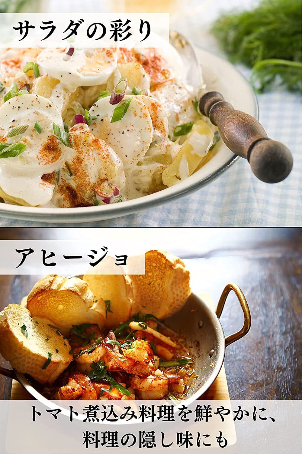 トマトの煮込み料理やサラダ・揚げ物など、どんな料理にもかけるだけで華やかさを演出できるスパイスです。