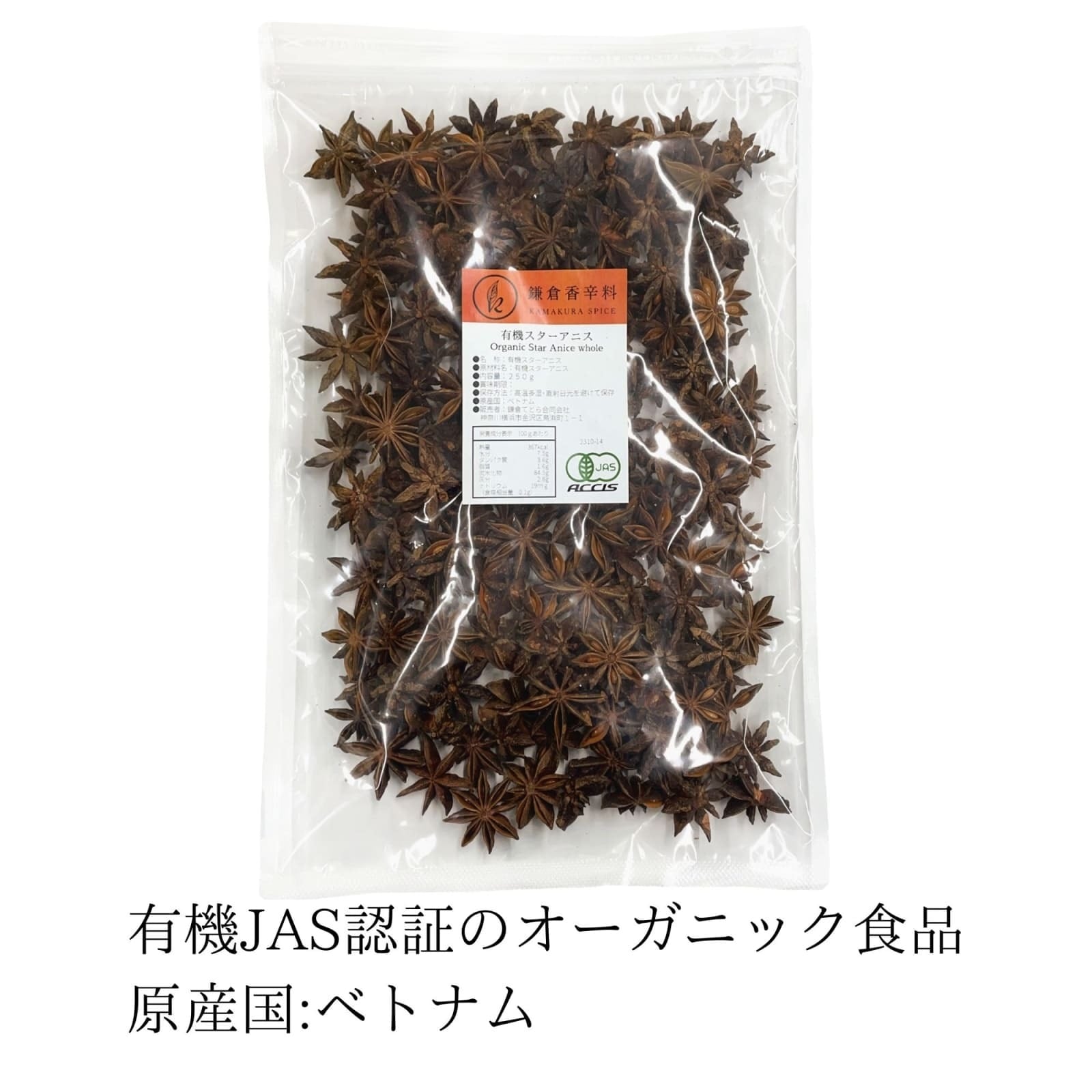 【送料無料】スターアニス 250g 【 有機JAS認証/ベトナム産 カレー スパイス にも 】 五香粉 (オーガニック 無添加 農薬不使用) 八角 業務用 香辛料 鎌倉てとら [ 鎌倉香辛料 ] | 鎌倉てとら
